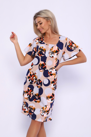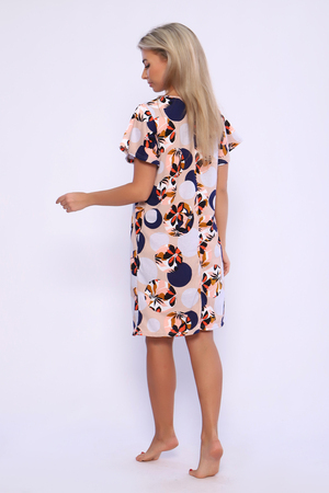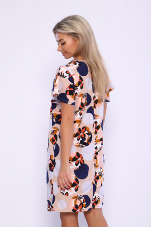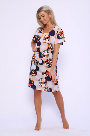 Сорочка свободного кроя с короткими рукавами - крылышками и сборкой по центру выреза горловины.