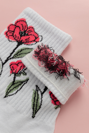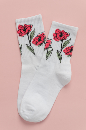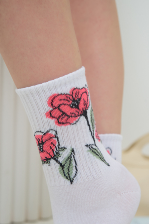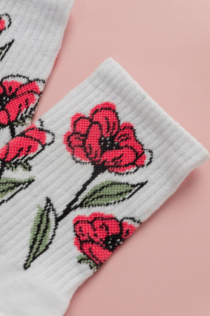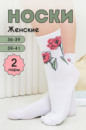 Высокие женские носочки, в комплекте 2 пары. Отличный подарок на 8 марта, 14 февраля или без повода. На верхней части носка изображение цветка - мака.