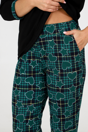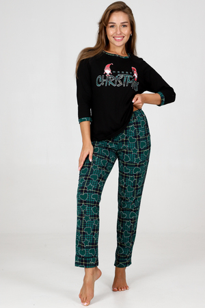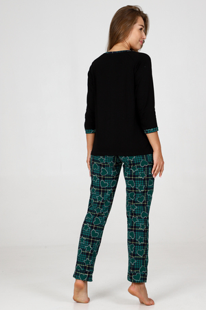 Пижама женская удобная и уютная вещь на каждый день. Джемпер с отделкой обтачки и манжеты контрастной тканью, стильная печать на груди, брюки зауженного кроя с карманами, манжеты внизу брюк.