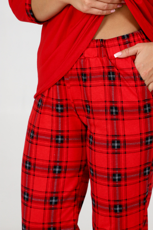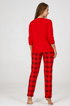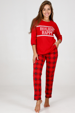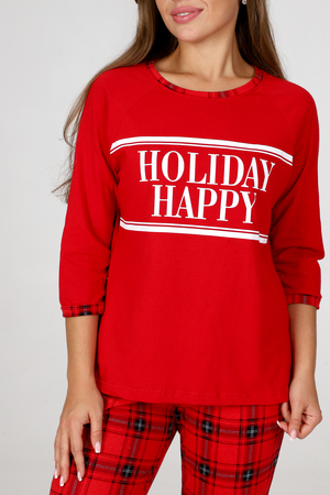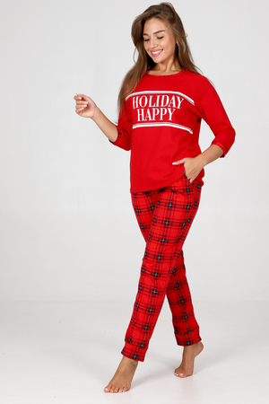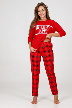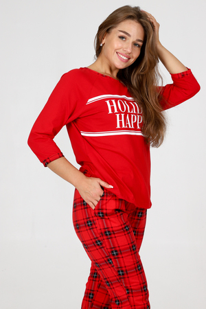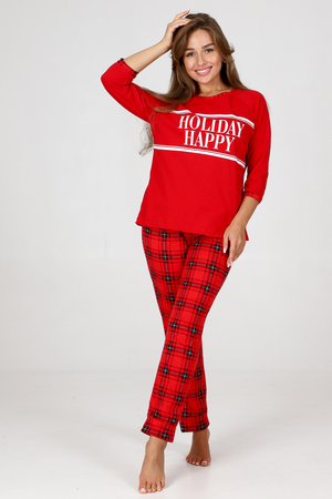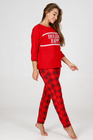 Пижама женская удобная и уютная вещь на каждый день. Джемпер с отделкой обтачки и манжеты контрастной тканью, стильная печать на груди, брюки зауженного кроя с карманами, манжеты внизу брюк.