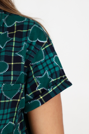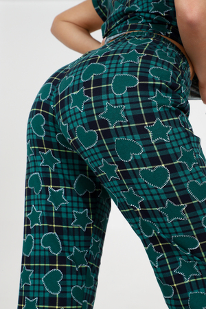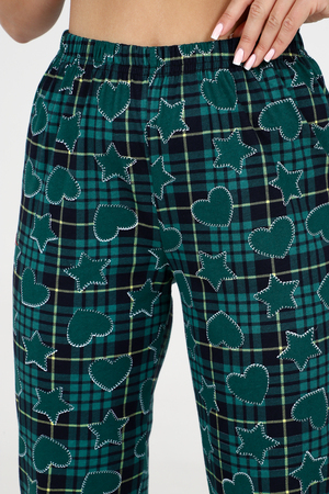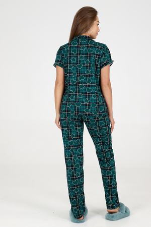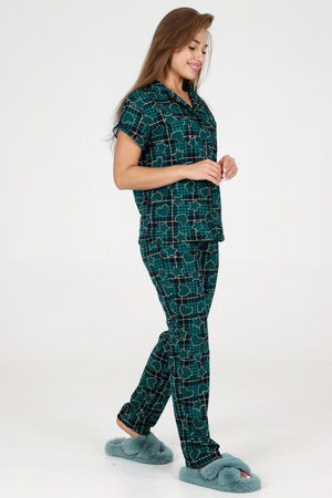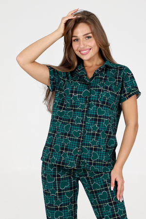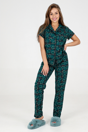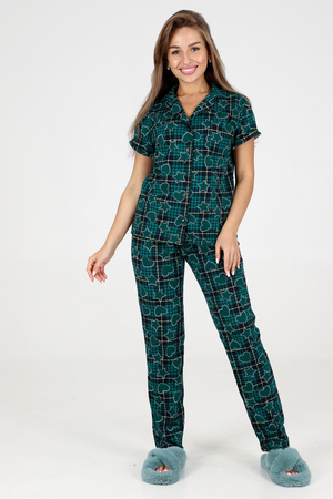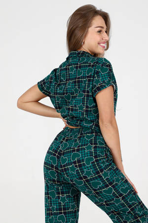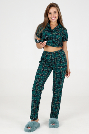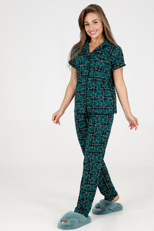 Классная удобная пижама на каждый день с кофточкой на пуговицах, отложной воротник, короткий рукав на манжете, брюки прямого кроя.