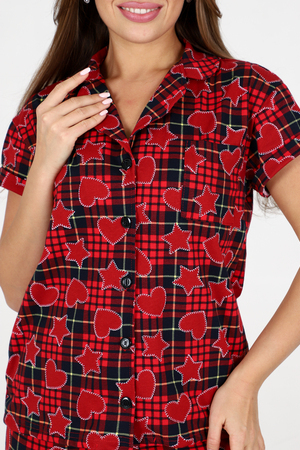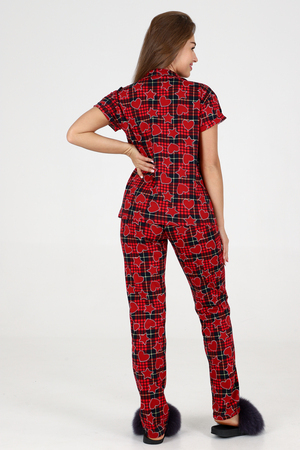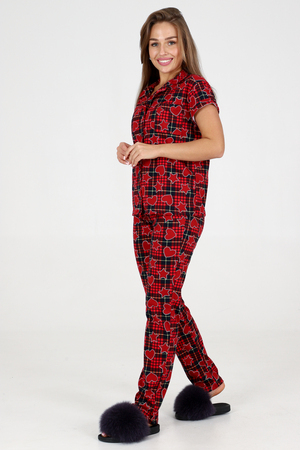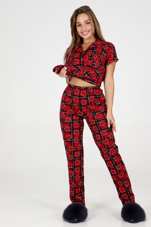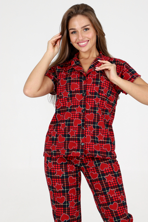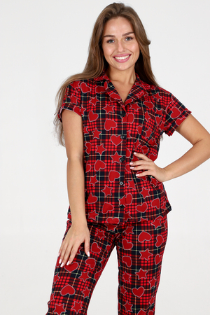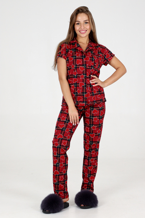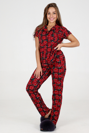 Классная удобная пижама на каждый день с кофточкой на пуговицах, отложной воротник, короткий рукав на манжете, брюки прямого кроя.