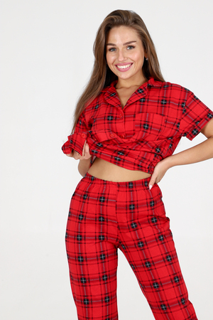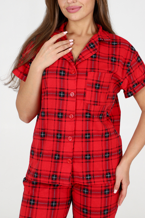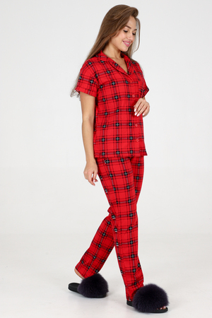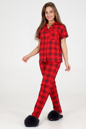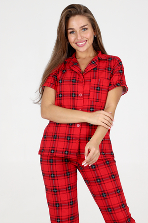 Классная удобная пижама на каждый день с кофточкой на пуговицах, отложной воротник, короткий рукав на манжете, брюки прямого кроя.