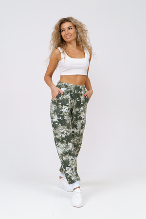 Женские брюки уже давно отличаются не только стилем и красотой, но и комфортом. Удобные не сковывающие движения элементы позволяют создавать модные образы. И это та самая модель - брюки джоггеры из футера 2-х нитки с высокой линией талии, которые идеально сядут на любой тип фигуры. Брюки такого плана заняли достойную позицию в гардеробе модниц благодаря своему оригинальному, и в то же время удобному крою. Внешний вид представляет собой свободные брюки сужающиеся к низу. Их отличительной чертой является пояс-резинка, обработанный на специализированной машине, и эластичные манжеты по низу брюк. Так же у модели имеются боковые карманы, в которых помещается всё самое необходимое. Удобство таких брюк неоспоримо, ведь резинка не пережимает тело и предоставляет свободу движений. В повседневной жизни за счёт своей универсальности брюки подойдут на любой повод - на работу, в школу, на прогулку, на тренировку... С брюками такого плана можно создавать спортивные образы и образы в направлении casual. Длинные майки, широкие свитера, другие элементы одежды oversize прекрасно дополнят эту модель. Не бойтесь добавлять аксессуары, они способны изменить образ до неузнаваемости и сделать брюки такого плана любимой вещью Вашего гардероба на любой случай жизни!
