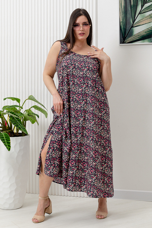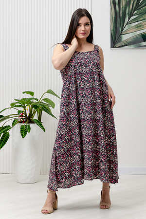 Сарафан женский, полуприлегающий, расширенный к низу, Широкие бретели и комфортная ткань создают дополнительное удобство в эксплуатации.В боковых швах внутренние карманы, в низу разрезы.