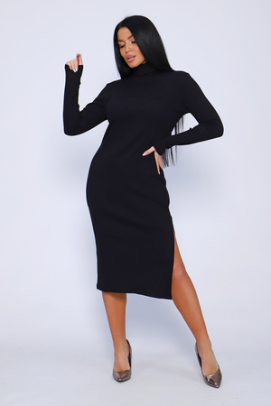 Женское платье-водолазка с высоким воротником - это стильная одежда на осень, зиму и весну. Можно использовать как вечерний, повседневный наряд или одежду в офис. Платье длинное, ниже колена, с длинным обтягивающим рукавом и разрезом с боку. Платье сидит по фигуре, имеет прямой приталенный силуэт. Платье-водолазка из плотного трикотажа в рубчик. Подходит для любого роста. Отлично будет смотреться с жакетом или пиджаком, с удлиненным кардиганом. Дополните образ эффектной бижутерией. Напоминаем, что платье изготовлено из тянущегося материала.