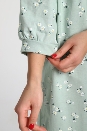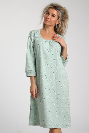 Сорочка ночная женская с рукавом 3/4, цветочный рисунок на светлом фоне.