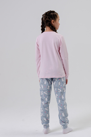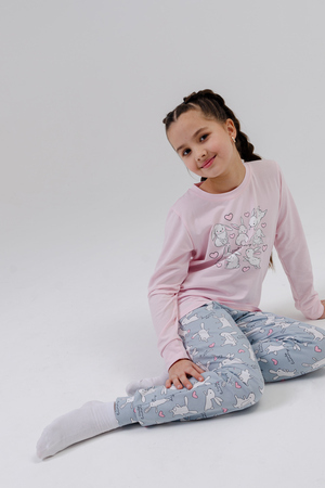 Пижама для девочки состоит из свободных брюк и лонгслива. Лонгслив выполнен из однотонного полотна, брюки с манжетой из набивного. Манжеты рукавов, брюк и обтачка горловины выполнены из той же ткани, что и само изделие. На переднюю часть лонгслива нанесен печатный рисунок. Домашний костюм для подростков без карманов выполнен из мягкого, легкого и комфортного трикотажа средней плотности, 92% хлопка и 8% лайкры, не сковывает движений. Подойдет для сна, в садик, одежды для дома и игр с друзьями, а также для занятий спортом: гимнастики, йоги, фитнеса в домашних условиях. Манжеты на рукавах и штанах надежно фиксируются и не позволяют детской одежде сползать, что придаёт дополнительное удобство при носке. Брюки на резинке, мягко и приятно прилегают к телу, не давят на живот и не вызывают дискомфорта. Футболка с длинными рукавами согреет ребенка в прохладные дни. Пижамные штаны и лонгслив обеспечивают комфортное телесное ощущение как в летний, так и в зимний период. Хлопок не вызывает раздражения на коже ребенка и впитывает влагу, выделяемую телом во время сна. Комплект не садится после стирки, не линяет и не теряет яркости красок. Домашняя одежда для малышей с рисунком добавит яркости и радости в повседневную жизнь. Станет приятным подарком для малыша на День Рождения. В таком комплекте ребенок будет чувствовать себя комфортно и уверенно. Детский костюм для девочки позволит насладиться спокойным сном и веселым настроением на новый день!