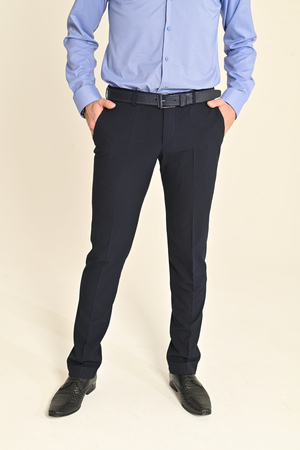 Брюки мужские модельные (зауженная классика), полуприлегающего силуэта, идеально сидят на фигуре и подчёркивают её достоинства. Брюки со стрелками, изготовлены из костюмных смесовых тканей с добавлением эластана, за счёт чего обеспечивается лёгкость ухода, долговечность и комфорт при носке. Оптимальный вариант одежды для работы и торжественных мероприятий.