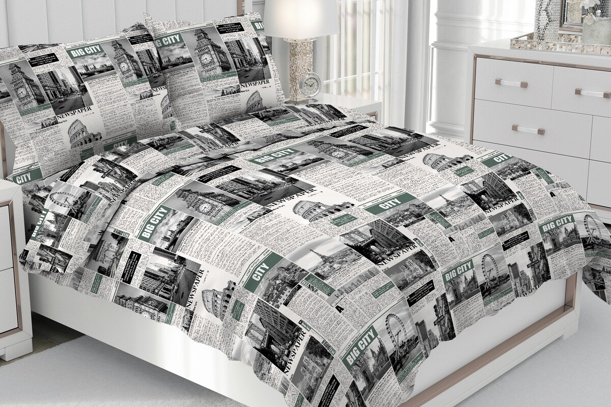 Комплект постельного белья 2,0 спальный включает в себя: пододеяльник 175х215 (+/- 2см) - 1 шт, простыня без резинки220х240 (+/- 2см) - 1 шт, наволочка 70х70 (+/- 2см) - 2 шт.