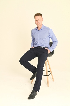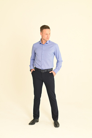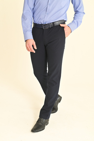 Брюки мужские Слим полуприлегающего силуэта, скроенные по современным лекалам - идеально сидят на фигуре и подчёркивают её достоинства. Брюки без стрелок, изготовлены из костюмных смесовых тканей с добавлением эластана, за счёт чего обеспечивается лёгкость ухода, долговечность и комфорт при носке. Оптимальный вариант одежды для работы и повседневного использования.