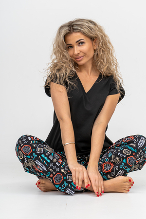 Женский стильный костюм состоит из футболки и брюк. Футболка выполнена из приятного к телу хлопчатобумажного полотна. V - образный вырез горловины и рукав с двойным крылышком идеально смотрится с брюками завышенной линии талии. Брюки - трубы в свою очередь выполнены из дышащего 100% хлопчатобумажного полотна. А вместительные боковые карманы, удобный и качественно обработанный на специальной машине пояс, позволит Вам чувствовать себя комфортно и уверенно. Костюм такого плана скроет все недостатки и подчеркнёт стройность, привлекательность и женственность фигуры. Брюки от костюма Вы можете приобрести отдельно - модель 36692, так же как и футболку - модель 36693.