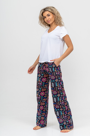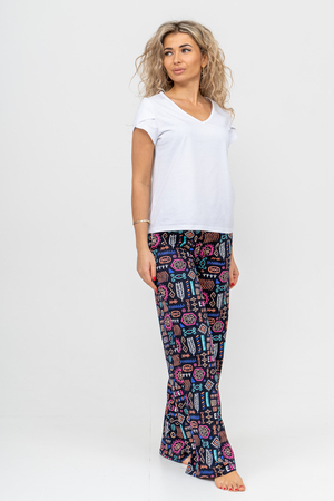 Женский стильный костюм состоит из футболки и брюк. Футболка выполнена из приятного к телу хлопчатобумажного полотна. V - образный вырез горловины и рукав с двойным крылышком идеально смотрится с брюками завышенной линии талии. Брюки - трубы в свою очередь выполнены из дышащего 100% хлопчатобумажного полотна. А вместительные боковые карманы, удобный и качественно обработанный на специальной машине пояс, позволит Вам чувствовать себя комфортно и уверенно. Костюм такого плана скроет все недостатки и подчеркнёт стройность, привлекательность и женственность фигуры. Брюки от костюма Вы можете приобрести отдельно - модель 36692, так же как и футболку - модель 36693.