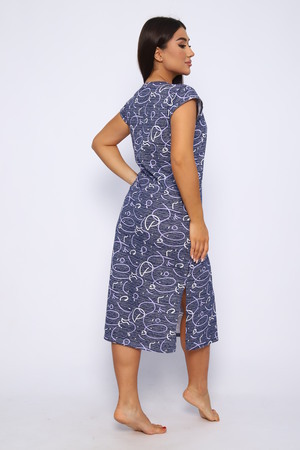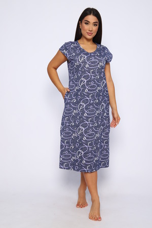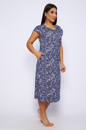 Платье женское удлиненное с легкими рукавами-крылышками выполнено из кулирки 100% хлопок. По бокам глубокие разрезы, карманы в боковых швах, горловина и пройма обработаны узким кантом из основной ткани. Платье элегантно подчеркивает фигуру, длина и разрезы придают стройность, оно идеально подойдет для дома и отдыха.
