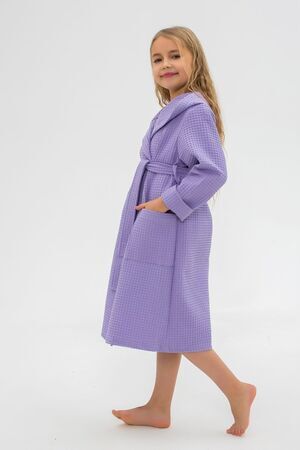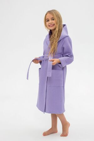 Халат вафельный детский. Модель с капюшоном на запах, с поясом в тон. Вафельное полотно 100% хлопок, плотностью 242 гр/м. Халат отлично подойдет как для дома, так и для бани, и для сауны или бассейна. Домашний халат - удобная и стильная удлиненная модель с глубоким капюшоном и длинным рукавом. Вафельный банный халат отлично впитывает влагу, дышит и очень приятен к телу.