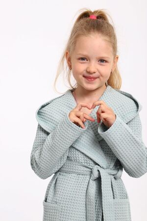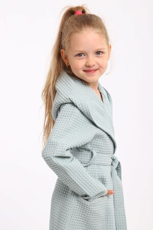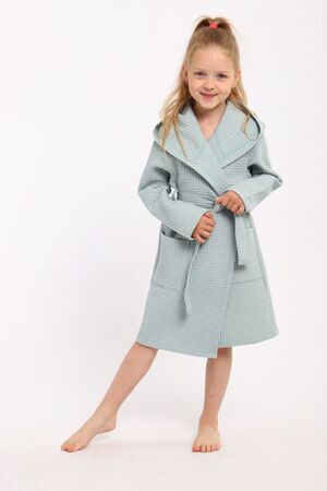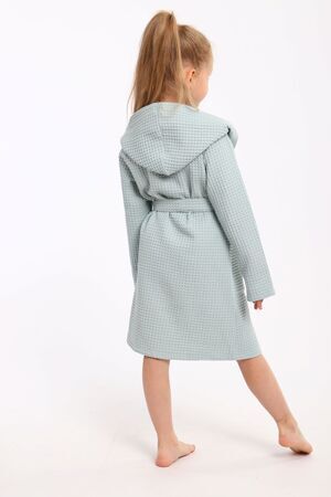 Халат вафельный детский. Модель с капюшоном на запах, с поясом в тон. Вафельное полотно 100% хлопок, плотностью 242 гр/м. Халат отлично подойдет как для дома, так и для бани, и для сауны или бассейна. Домашний халат - удобная и стильная удлиненная модель с глубоким капюшоном и длинным рукавом. Вафельный банный халат отлично впитывает влагу, дышит и очень приятен к телу.