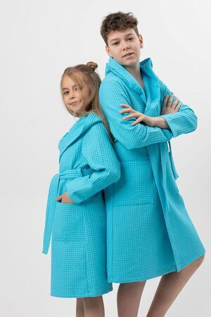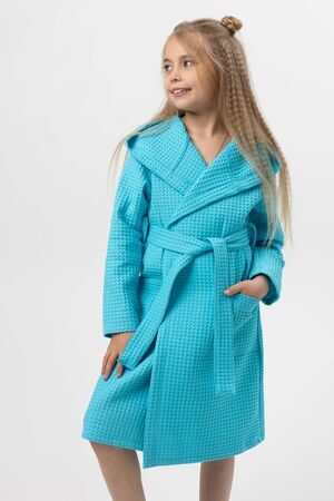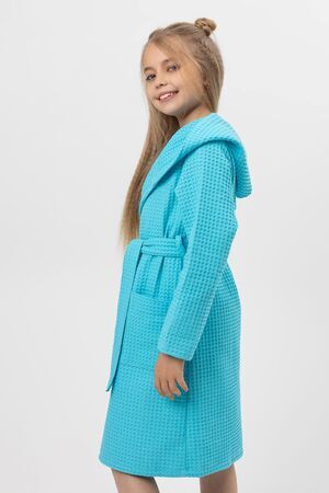 Халат вафельный детский. Модель с капюшоном на запах, с поясом в тон. Вафельное полотно 100% хлопок, плотностью 242 гр/м. Халат отлично подойдет как для дома, так и для бани, и для сауны или бассейна. Домашний халат - удобная и стильная удлиненная модель с глубоким капюшоном и длинным рукавом. Вафельный банный халат отлично впитывает влагу, дышит и очень приятен к телу.