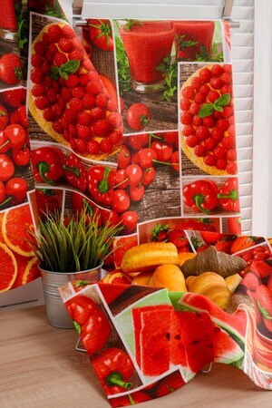 Набор кухонных полотенец Летний коктейль представляет собой идеальный выбор для тех, кто ценит комфорт и стиль в своей кухне. Этот набор, выполненный из высококачественного хлопчатобумажного вафельного полотна, прекрасно сочетает в себе функциональность и привлекательный внешний вид. Одно из главных преимуществ этого набора - его уникальный красный цвет. Красный является символом страсти и энергии, и обладая этими полотенцами, вы дарите своей кухне яркий и привлекательный вид. Кроме того, набор украшен принтом ярких фруктов, которые добавляют ощущение свежести и веселья к вашему кухонному интерьеру. Одной из особенностей этих полотенец является наличие петельки, благодаря которой, вы можете легко повесить полотенца на крючок или вешалку. Набор кухонных полотенец Летний коктейль изготовлен из натурального хлопчатобумажного вафельного полотна, которое обладает высокой абсорбирующей способностью. Это позволяет полотенцам быстро впитывать влагу и эффективно вытирать поверхности. Благодаря высокому качеству материала, полотенца прочные и долговечные, и они прослужат вам верой и правдой на протяжении долгого времени. Наш набор кухонных полотенец Летний коктейль является отличным подарком для любителей кулинарии и домашнего уюта. Вы можете использовать его в своей кухне или подарить близкому человеку.