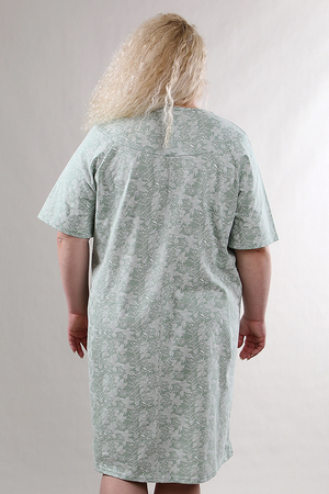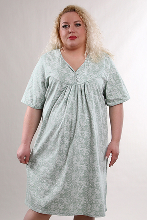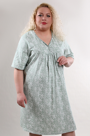 Сорочка женская с коротким рукавом. Данная модель выполнена из трикотажного полотна кулирка (хлопок 100%). Покрой реглан с отрезной полочкой. Горловина фигурная обработанная окантовкой из основной ткани. На кокетке присутствуют кнопки. Отличная модель для сна и дома.