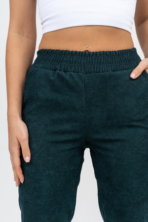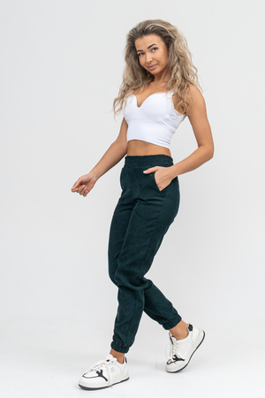 Женские стильные брюки - бананы выполнены из качественного вельвета, что увеличивает долговечность изделия, придавая ему прочность. Вельвет практичен, прост в уходе и использовании. Обладает высокой износоустойчивостью, прочностью, не деформируется и не вытягивается, приятен к телу, не мнётся и не выцветает. Материал гигроскопичен, хорошо пропускает воздух и сохраняет тепло. Высокая посадка, вместительные боковые карманы, удобный и качественно обработанный на специальной машине пояс - резинка позволит Вам чувствовать себя максимально комфортно. Такой фасон брюк формирует выразительный женственный силуэт, скрывает мелкие недостатки фигуры и гармонизирует пропорции. Всё это образует идеальное решение для лука на каждый день, проведённый вами дома, на работе, в школе и на отдыхе.