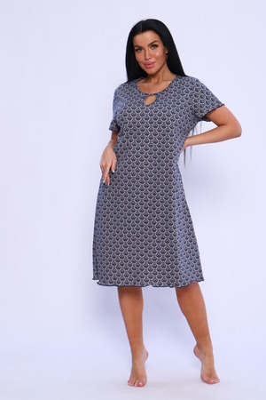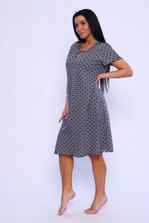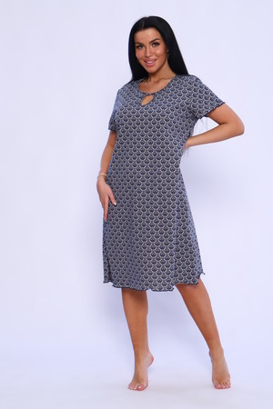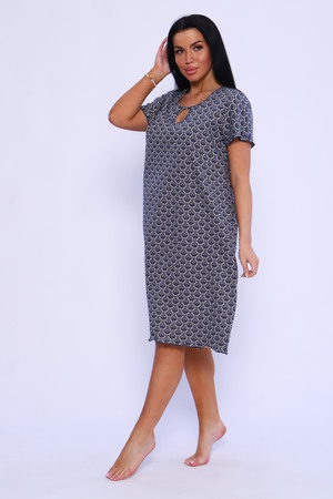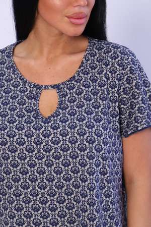 Сорочка женская средней длины. Сорочка прямого силуэта, низ и рукава обработаны краевой машиной. Горловина круглая с вырезом капельки.