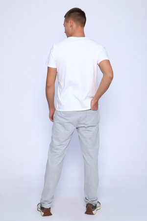 Брюки мужские изготовлены и высококачественного футера 2х нитка, имеют прямой крой. В процессе использования и стирок изделие не вытягивается, не линяет, не закатывается. Пояс брюк на резинке, дополнен внутренним шнуром для дополнительного регулирования объема талии. Боковые прорезные карманы для удобства с застежкой-молнией. Так же имеется задний карман. Под карманом слева имеется стильная вышивка, что придает модели индивидуальность. Модель имеет удобную посадку, не сковывает движения.