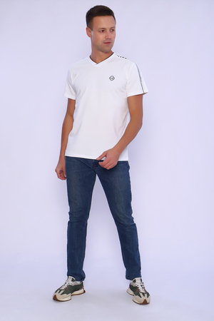 Мужская футболка представлена в пяти цветах, изготовлена из качественного хлопка с лайкрой; материал дышащий, крайне приятен к телу. Ворот футболки имеет V-образный вырез. Изделие дополнено стильной аппликацией на плечах и объемной вышивкой на груди. За счет удобного кроя швы не ощущаются в течение дня, а усиленный ворот комфортно прилегает к телу. Классическая мужская футболка без принта поможет создать образ в любом стиле. Футболка из трикотажа подойдет также для спорта, тренировок в зале и на улице летом, теплой весной и осенью.