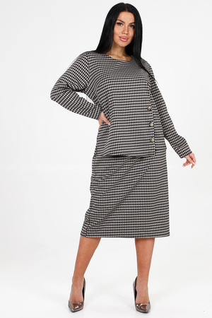 Женский костюм двойка, который является идеальным выбором для стильных и модных женщин. Этот костюм состоит из туники и юбки на резинке, создавая элегантный образ. Туника имеет длинные рукава и украшена планкой с пуговицами, добавляя изысканный шарм этому костюму. Кроме того, туника ассиметрична, что придает ей особую привлекательность. Изготовленный из качественной ткани - атаман, этот костюм обеспечивает комфорт и легкость в ношении. Благодаря широкому размерному ряду от 48 до 58 размера, каждая женщина сможет найти подходящую модель. Костюм представлен в двух классических расцветках: белой и бежевой.