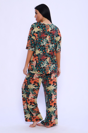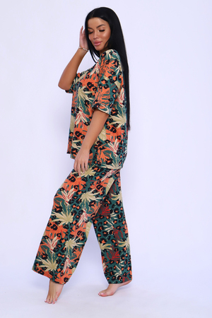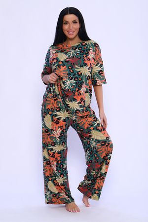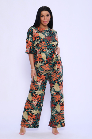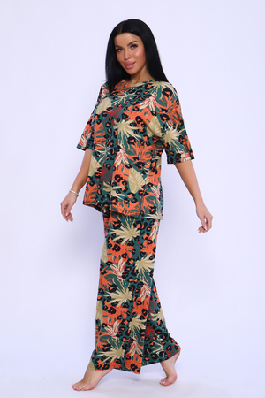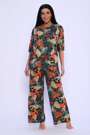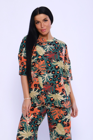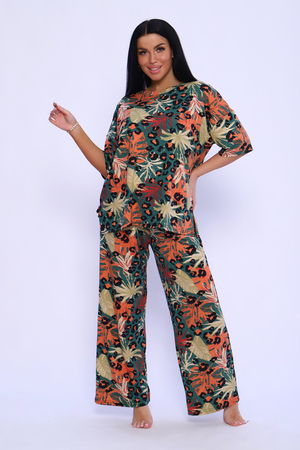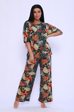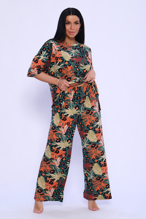 Женский костюм из вискозы с лайкрой кофта + брюки, кофта свободная с короткими рукавами и разрезом по бокам. Брюки "палаццо" с высокой посадкой, Костюм прекрасно подойдёт для дома, обращаем ваше внимание что модель свободного покроя и указанные размеры подходят и для девушек на размер больше, например размер 48 подходит девушка 48 и 50.