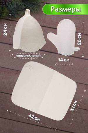 Наш оригинальный набор для бани включает в себя шапку, рукавицу и коврик. Это незаменимые аксессуары для любителей попариться в бане и сауне. Шапка защитит волосы от сухости и ломкости, голову от перегрева и предотвратит появление головокружения. Рукавицы – это повышение комфорта при использовании банного веника и безопасность ваших рук от появления ожогов. А индивидуальный коврик защитит от высоких температур при контакте с горячей лавкой в парилке. Оригинальная вышивка выполнена качественно и не сотрётся в процессе использования. На изделиях имеются петельки, с помощью которых их можно повесить на крючок в предбаннике. Такой набор станет отличным подарком для любителей отдыха в бане или сауне.