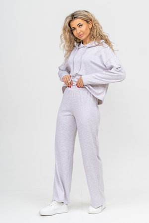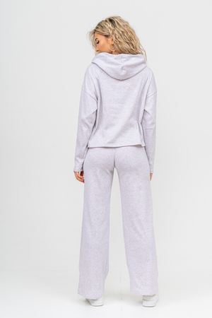 Стильный костюм выполнен из кашкорсе с начёсом. Ткань гладкая с лица и ворсистая с начёсом с изнанки, неприхотлива в уходе и приятная на ощупь. Благодаря особой мягкости, комфортности при носке, дышащей структуре полотна, эта разновидность французского трикотажа широко распространилась по миру. Материал гигроскопичен, поэтому хорошо держит тепло и позволяет телу дышать. Широкие брюки в стиле палаццо - это находка этого сезона. Пояс брюк выполнен на специализированной поясной машине, что делает его максимально качественным. Толстовка свободная, с капюшоном, спущенной линией плеча и слегка удлинённым рукавом. Всё это делает мягкий приятный к телу костюм по настоящему любимым! Костюм можно надевать дома, в качестве повседневной одежды, на работу, в поездку или деловую встречу. Свободный прямой крой свитшота и брюк хорошо скрывает несовершенства, подчеркивает достоинства фигуры и изящный силуэт. Толстовку и брюки можно носить как вместе, так и отдельно. Однотонный дизайн без принта, надписей и декоративных элементов будет гармонировать с любым стилем одежды. Свитшот с длинным рукавом, спущенным плечом можно легко сочетать с джинсами и юбками. Длина рукава указана от точки основания шеи. К брюкам свободной формы можно подобрать абсолютно любой верх. Дополнить образ можно любимыми аксессуарами и украшениями. Стильный, модный брючный костюм, спортивный женский теплый, могут носить девочки - подростки, взрослые и беременные женщины. Так же костюм можно взять для отдыха и йоги, взять с собой в отпуск или в путешествие. Комплект из свитшота и свободных брюк станет удобной прогулочной одеждой на любой сезон. Желаем Вам прекрасного настроения и приятных покупок!