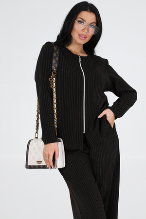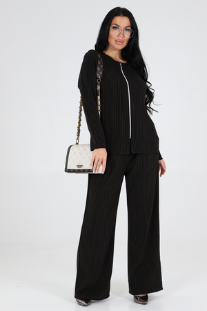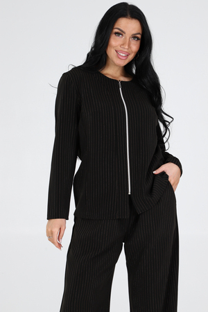Женский классический костюм с брюками – неотъемлемая часть гардероба современной женщины. Костюм выполнен из высококачественной костюмной ткани, что обеспечивает отличную посадку и долговечность изделия. Жакет этого костюма имеет укороченный крой и наличие молнии дает ему стильный и современный вид. Рукава длинные, что позволяет сохранить элегантность и подчеркнуть женственность. Свободные брюки на резинке придают дополнительный комфорт и позволяют чувствовать себя уверенно во время активных дневных деловых встреч. Костюм отлично подходит как для офиса, так и для повседневной носки, придавая образу шарма и элегантности.