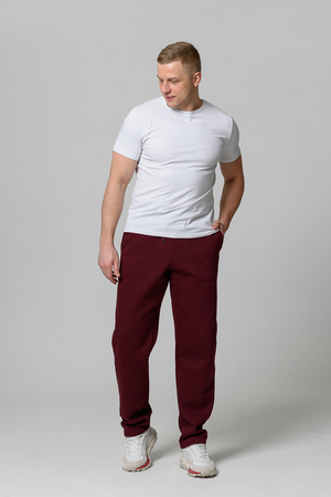 Брюки мужские утепленные с начесом. На передней части брюк внутренние карманы. Пояс эластичный на широкой резинке со шнурком.