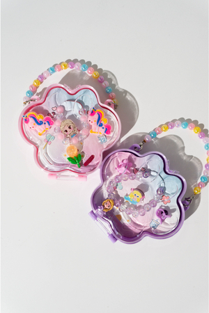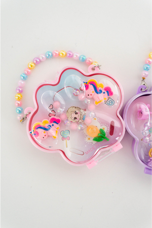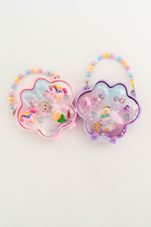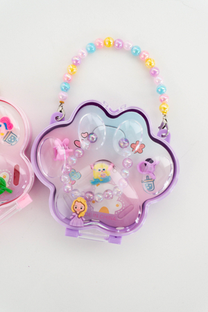 Набор детских аксессуаров. В наборе различные украшения для девочек - бусы, заколки, колечки и прочее. Упакованы в красивую штакулку в форме лапки. Наполняемость и цвет шкатулки ассорти.