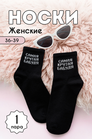 Комплект женских носков 1 пара. Широкая резинка, на резинке надпись "Крутая бабуля".