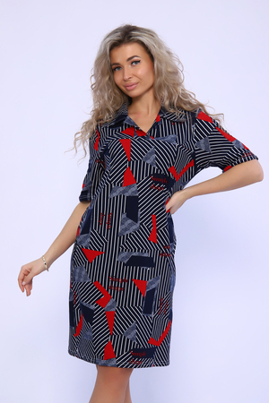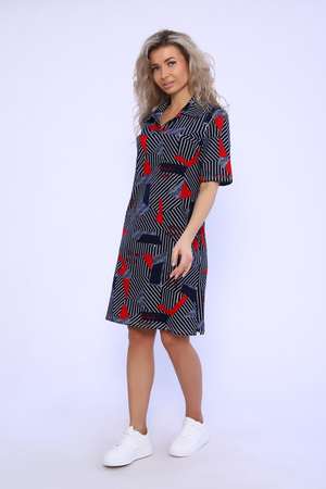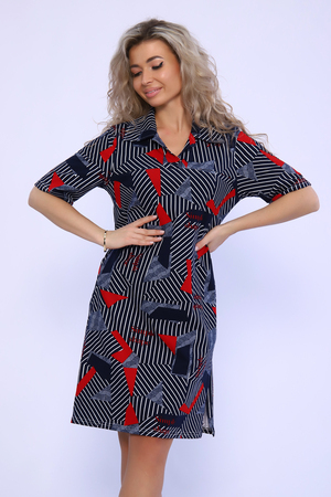 Платье с карманами и разрезами в боковых швах. Рукав короткий, рубашечный воротник. Идеальный повседневный вариант.
