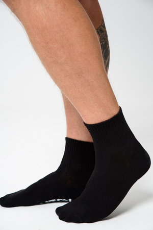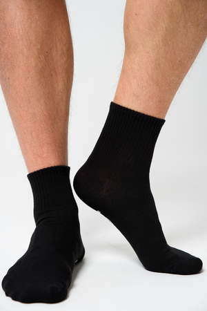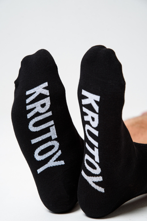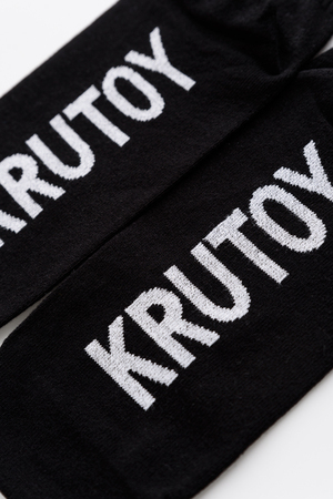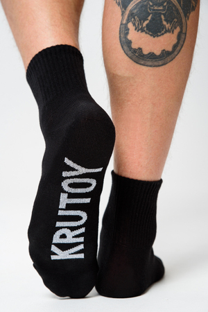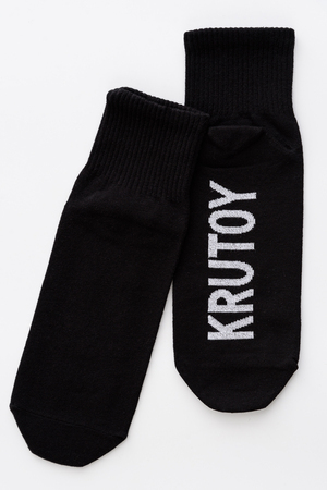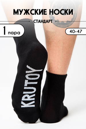 Мужские носки, комплект 1 пара. Большая надпись на стопе "Крутой". Резинка по всей верхней части носка. Пятка и носок другого цвета.