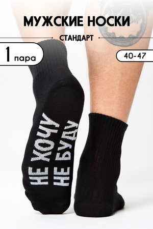 Мужские носки, комплект 1 пара. Широкая резинка по всей верхней части носка. Надпись на стопе "Не хочу, не буду"