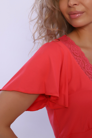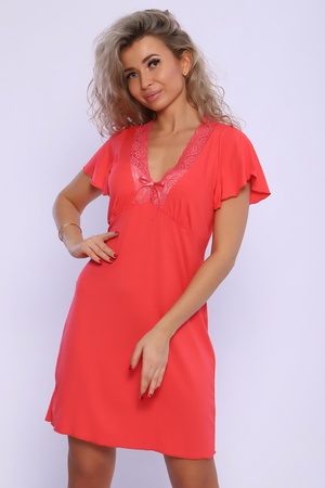 Ночная сорочка из мягкой и приятной к телу вискозы, с рукавчиком в виде крылышка, лиф декорирован кружевом и бантиком из атласной ленты, под грудью кокетка со складочками. Сорочка полуприлегающего силуэта длинна до коленочки, низ сорочки и рукава обработаны под краевку. По спинке шов. На модели 44-46 размер, размеры сдвоены 44-46.48-50,52-54,56-58. Порадуйте своих родных и близких приятным подарком. Очень сочные и красивые цвета шоколад, голубой, коралл.