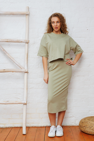Костюм женский от бренда Raposa – это идеальный выбор для любой женщины и девушки на весну, лето и осень. Этот трикотажный комплект состоит из свободного топа и юбки миди, которые идеально дополняют друг друга и помогут создать Вам совершенный образ. Хлопковый костюм изготовлен из футера 2‑х нитки, который обеспечивает комфорт и долговечность, что позволяет использовать костюм двойку долгое время без потери качества. Костюм выполнен в сером цвете и цвете хаки - классических и универсальных, которые подходят для любого типа внешности и стиля. Хаки и серый являются нейтральными и спокойными цветами, поэтому вы сможете сочетать этот костюм с различными аксессуарами и обувью. Юбка карандаш с разрезом – это стильный и женственный элемент этого костюма. Она подчеркивает формы и придает образу изысканности и элегантности. Разрез сзади юбки позволяет свободно двигаться и выглядеть еще более привлекательно. Пояс на резинке обеспечивает идеальную посадку макси-юбки на любую фигуру, подчеркивает талию и создает желаемый силуэт. Благодаря этой детали, прямая юбка становится универсальной, подходит как для стройных девушек, так и для тех, кто хочет скорректировать некоторые недостатки фигуры.Оверсайз топ – это прекрасное дополнение к длинной юбке. Укороченная футболка создает контраст и добавляет яркий акцент вечернему образу. Удлиненная спинка делает трикотажную футболку большого размера уникальной и запоминающейся. Благодаря своей мягкости и комфорту, он станет идеальным вариантом для отдыха дома, релакса и проведения время с семьей. Оверсайз костюм женский от бренда Raposa - это отличный выбор для создания неповторимого образа. Он подчеркнет вашу индивидуальность и добавит ярких ноток в вашу повседневность.