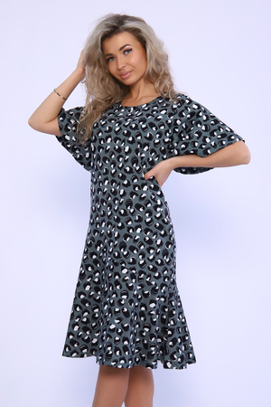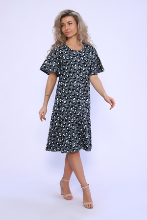 Платье полуприлегающего силуэта с короткими рукавами - воланами. По низу изделия притачные воланы. Идеальный повседневный вариант.