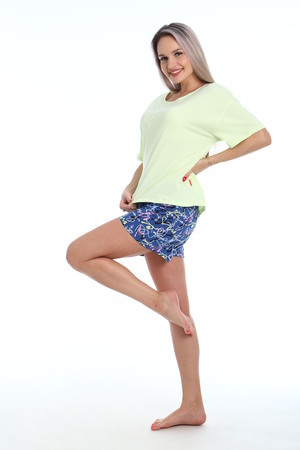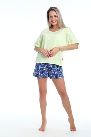 Женский комплект "Очарование"- очень комфортная модель, состоящая из футболки свободного кроя, не стесняющей движений и шорт. Футболка дополнена принтом. Широкий размерный ряд позволит каждой покупательнице не остаться без покупки.