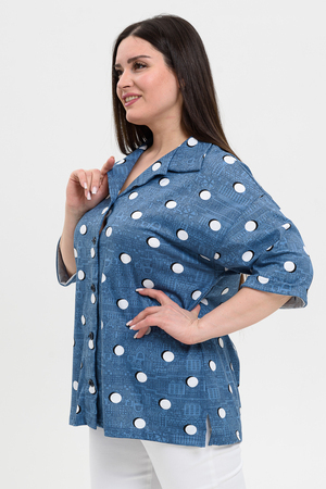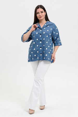 Рубашка-блузка из лёгкого мягкого трикотажного полотна прямого силуэта, на пуговицах, отложной воротник втачной рукав с манжетами, застёжка на пуговицах. Изделие хорошо сочетается с брюками, юбками, бриджами.