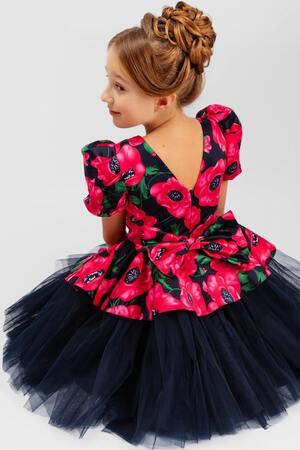 Платье для девочки Соль&Перец. Нарядное платье для девочки отличается особым шармом и элегантностью. Верх платья выполнен из качественной атласной ткани, которая обеспечивает комфорт и долговечность. Пышная и воздушная юбочка сделана из фатина с добавлением атласного подклада, что придаёт платью дополнительную легкость и объём. Платье застёгивается сзади на молнию, что позволяет быстро и легко одеть или снять его. Кроме того, платье дополнено съёмным бантом. Яркий принт на платье делает его идеальным выбором для праздников, торжеств и других особых случаев.