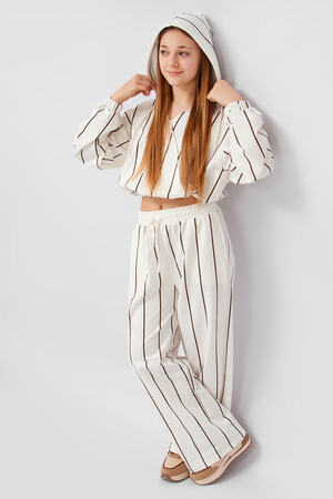 Размер 140 (рост 134-140 см) длина кофты 44 см, ОГ 84 см, длина рукава от горловины 58 см; длина брюк по боковому шву 86 см, по-внутреннему 60 см, ОТ 64 см, ОБ 84 см.
