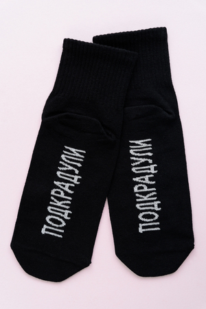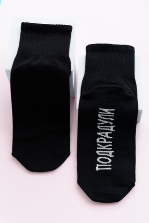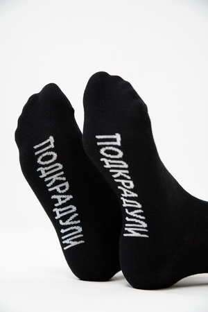 Женские носки в комплекте 1 пара. Широкая резинка по всей верхней части носка. Надпись на стопе "Подкрадули"