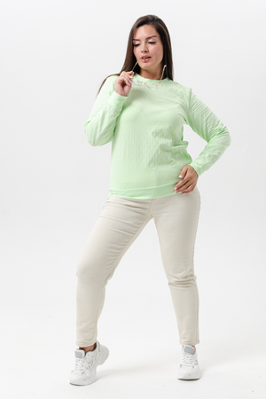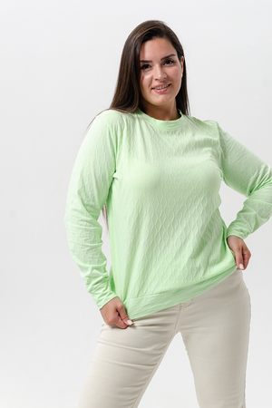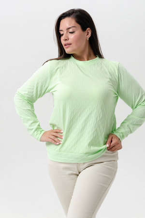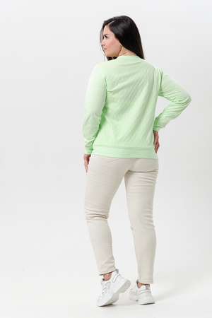 Женский свитшот - базовая вещь вашего гардероба. Свитшот с округлой горловиной, на рукавах манжеты, снизу на кофте пояс, выполнен из легкой, приятной ткани. Удобный и яркий, подойдет для повседневной носки.