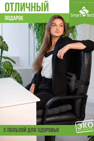Комплект «Уютный офис» станет полезным и оригинальным подарком для тех, кто заботится о своем здоровье. Комплект включает квадратную подушку на сиденье (40х40 см) и подушку под спину (40х20 см) с регулируемыми крепежными ремнями. Чехлы выполнены из износостойкой ткани грета (хлопок и полиэстер), а наполнителем служит лузга гречихи, которая оказывает мягкое массажное действие и отлично пропускает воздух.