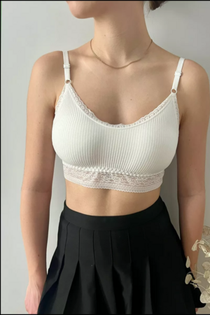 Укороченный топик с прозрачным кружевом и ажурными деталями подчеркнет красоту вашей форме груди благодаря лифу со вставными чашечками. Облегающий короткий топик с открытой спиной – модный стиль одежды, подходящий для дома, сна, вечерних прогулок, школы или просто для повседневной носки, сочетается с джинсами и юбкой. Майка удобна для тренировок занятий танцами фитнесом гимнастики спортзала, благодаря поддержке и удобным лямкам с регулирующимися бретельками.