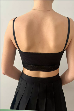 Укороченный топик с прозрачным кружевом и ажурными деталями подчеркнет красоту вашей форме груди благодаря лифу со вставными чашечками. Облегающий короткий топик с открытой спиной – модный стиль одежды, подходящий для дома, сна, вечерних прогулок, школы или просто для повседневной носки, сочетается с джинсами и юбкой. Майка удобна для тренировок занятий танцами фитнесом гимнастики спортзала, благодаря поддержке и удобным лямкам с регулирующимися бретельками.